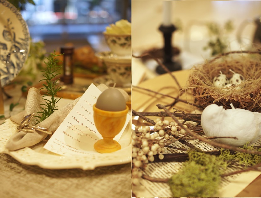 大きい卵が入っているエッグスタンドも実はキャンドルなのをお気づきでしょうか。